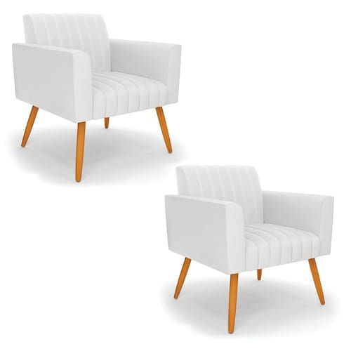 Quer uma decoração única e sofisticada? A Poltrona Viena é ideal para quem está em busca de um móvel versátil e diferenciado. Esse tipo de peça é ideal para ambientes modernos e descontraídos. Vem com uma ideia totalmente diferente, devido sua curva e forma suave, os detalhes gomados do tecido são tendências de decoração atuais. Uma dica legal de complemento é escolher almofadas que combinem com a poltrona. Sua estrutura é confeccionada em madeira de eucalipto proveniente de reflorestamento, o estofamento do assento é composto de espuma prorelax D-28 no encosto, e é revestido em Corino um tecido aconchegante, resistente e extremamente luxuoso. Sua sustentação é dada pelos tradicionais Pés Palito Castanho, suportando em média até 115 Kg. Crie um lindo efeito visual, em qualquer lugar da sua casa ou escritório! Garanta já seu Kit 2 Poltronas Viena.