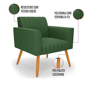 Quer uma decoração única e sofisticada? A Poltrona Viena é ideal para quem está em busca de um móvel versátil e diferenciado. Esse tipo de peça é ideal para ambientes modernos e descontraídos. Vem com uma ideia totalmente diferente, devido sua curva e forma suave, os detalhes gomados do tecido são tendências de decoração atuais. O tom Verde vem ganhando cada vez mais espaço no mercado, uma cor que traz elegância e combina com vários tipos de decoração. Uma dica legal de complemento é escolher almofadas que combinem com a poltrona. Sua estrutura é confeccionada em madeira de eucalipto proveniente de reflorestamento, o estofamento do assento é composto de espuma prorelax D-28 no encosto, e é revestido em Suede um tecido aconchegante, resistente e extremamente luxuoso. Sua sustentação é dada pelos tradicionais Pés Palito Castanho, suportando em média até 115 Kg. Crie um lindo efeito visual, em qualquer lugar da sua casa ou escritório! Garanta já seu Kit 2 Poltronas Viena.