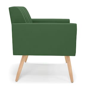 Quer uma decoração única e sofisticada? A Poltrona Viena é ideal para quem está em busca de um móvel versátil e diferenciado. Esse tipo de peça é ideal para ambientes modernos e descontraídos. Vem com uma ideia totalmente diferente, devido sua curva e forma suave, os detalhes gomados do tecido são tendências de decoração atuais. O tom Verde vem ganhando cada vez mais espaço no mercado, uma cor que traz elegância e combina com vários tipos de decoração. Uma dica legal de complemento é escolher almofadas que combinem com a poltrona. Sua estrutura é confeccionada em madeira de eucalipto proveniente de reflorestamento, o estofamento do assento é composto de espuma prorelax D-28 no encosto, e é revestido em Suede um tecido aconchegante, resistente e extremamente luxuoso. Sua sustentação é dada pelos tradicionais pés palito natural, suportando em média até 115 Kg. Crie um lindo efeito visual, em qualquer lugar da sua casa ou escritório! Garanta já seu Kit 2 Poltronas Viena.