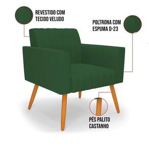 Quer uma decoração única e sofisticada? A Poltrona Viena é ideal para quem está em busca de um móvel versátil e diferenciado. Esse tipo de peça é ideal para ambientes modernos e descontraídos. Vem com uma ideia totalmente diferente, devido sua curva e forma suave, os detalhes gomados do tecido são tendências de decoração atuais. O tom Verde vem ganhando cada vez mais espaço no mercado, uma cor que traz elegância e combina com vários tipos de decoração. Uma dica legal de complemento é escolher almofadas que combinem com a poltrona. Sua estrutura é confeccionada em madeira de eucalipto proveniente de reflorestamento, o estofamento do assento é composto de espuma prorelax D-28 no encosto, e é revestido em Veludo um tecido aconchegante, resistente e extremamente luxuoso. Sua sustentação é dada pelos tradicionais Pés Palito Castanho, suportando em média até 115 Kg. Crie um lindo efeito visual, em qualquer lugar da sua casa ou escritório! Garanta já seu Kit 2 Poltronas Viena.