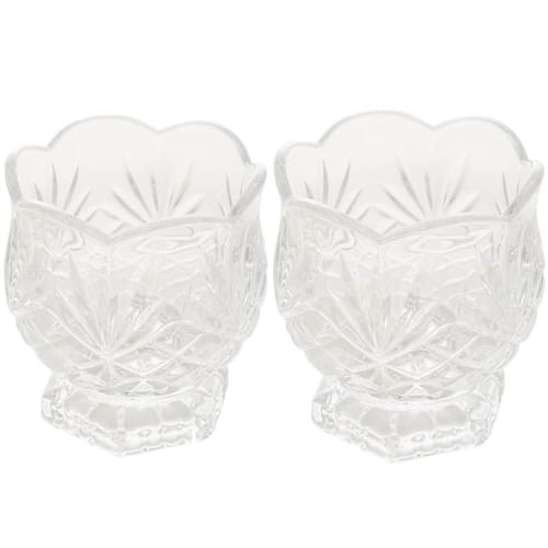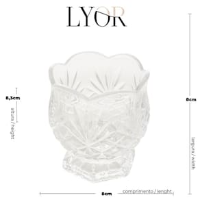 Garantia: 90 dias / Peso: 0,564kg / Cor predominante: transparente / Ref: 7794463664284; Dimensões totais do produto: 8cm (C) x 8cm (L) x 8,3cm (A); Conteúdo: 2 potinhos decorativos Lyor; Material: vidro cristal; Modelo: Dublin.