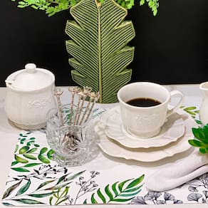 Limpeza e cuidados: - A limpeza pode ser feita utilizando apenas uma flanelinha úmida com sabão neutro, seguido de pano seco; - Não utilize produtos químicos ou materiais abrasivos na limpeza das peças; - Não pode ir ao forno, freezer, lava louças ou micro-ondas; - Cuidado ao manusear os produtos, peças frágeis.