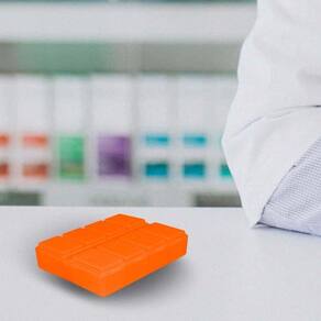 Porta comprimidos retangular com 8 compartimentos, tampa articulada, com dias da semana. Feito em Plástico Premium PP atóxico e resistente. Imagens meramente ilustrativas. Marca: Bb Store Ean: 7908567019448