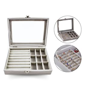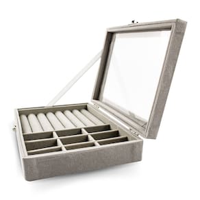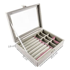 02 - Porta Joias com divisórias removíveis, tampa acrílica e forro de veludo cinza