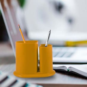 Porta Lápis Duo feito em Plástico Premium PP resistente, com duas cavidades, espaço para cartão de visita, prático, uma excelente opção para organizar lápis, canetas, marcadores e outros acessórios na mesa de trabalho e/ou estudo. Imagens meramente ilustrativas. Marca: Bb Store Ean: 7908567023254