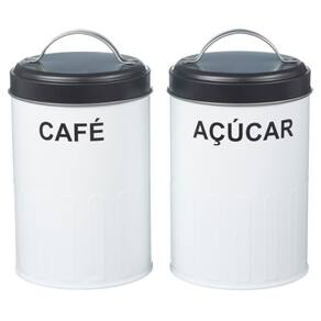 Kit 2 Porta Mantimentos Potes Para Café e Açucar Decoração Cor: Branco Kit 2 Porta Mantimentos em Metal Yoi: Estilo e Versatilidade em Sua Casa