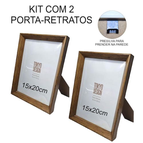 Quantidade: 2 Porta Retrato Amadeirado Mdf Minimalista Foto 15x20cm