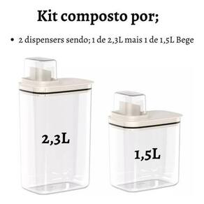 ASPEN DECOR F6410 Kit com 2 Porta Sabão Amaciante Hermético 2,3L e 1,5L Flow OU Descrição; O Dispenser da linha Flow garante a organização e cuidado para sua lavanderia, possui duas opções de tamanho disponível sendo em 2,3L e 1,5L para se adaptar a sua necessidade. Com design em transparência que facilita a gestão visual dos produtos de limpeza e promove a harmonia do ambiente. A tampa com vedação hermética possui anel de vedação que mantém o recipiente bem fechado para maior segurança no manuseio, proporcionando tranquilidade durante as tarefas. Produzido em material resistente, o organizador garante durabilidade e praticidade. Eleve o nível da organização da sua lavanderia, e traga sofisticação para decorar a sua casa. Ideal para armazenar diferentes tipos de produtos de limpeza e lavanderia em geral, seja, sabão líquido, amaciante, alvejante, sabão em pó, removedor de manchas e o que mais você desejar. Principais diferenciais; Tampa medidora com gravação de gradação em ml Aba ergonômica na tampa para facilitar a abertura Tampa com sistema de caimento interno para retornar o líquido que sobra Informações Técnicas; Material; PS Poliestireno Capacidade e Medidas A x L x P ; Porta Sabão Amaciante Hermético Flow OU 2,3L: 26,7cm x 10cm x 15cm Porta Sabão Amaciante Hermético Flow OU 1,5L: 19,5cm x 10cm x 15cm Cor; será conforme escolhida por você no anúncio sendo disponível em 3 cores; Branco, Bege ou Cinza Marca: Não Informado Ean: 7794153754455