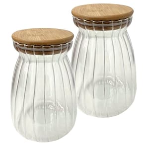 2 Pote Hermético Com ;Tampa De Bambu 1 litro;