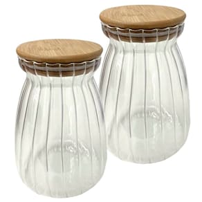 2 Pote Hermético Com Tampa De Bambu 1 Litro;