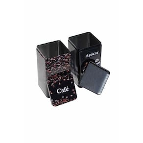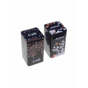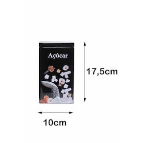 Características: Tamanho lata redonda: altura de 19cm e diâmetro de 10,5cm Tamanho lata quadrada: altura de 17,5cm, largura de 10cm e profundidade de 10cm Material: Metal galvanizado com pintura Quantidade: 2 unidades 1 Café + 1 Açúcar