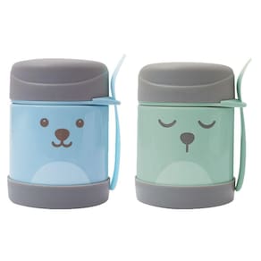 Kit 2 pote térmico alimentação comida do bebe infantil aço inoxidável com talher papinha gumy Cor: azul/verde Kit com 02 potes.