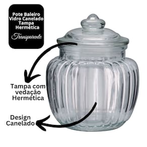 Mantenha seus alimentos bem armazenados com estilo e praticidade. O Pote Baleiro de Vidro Canelado é uma escolha elegante para quem valoriza organização e beleza no dia a dia.