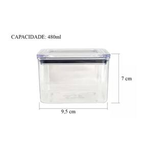 Mantenha seus alimentos frescos e organizados com o Kit de 2 Potes Herméticos de Acrílico Qualyplas. Com capacidade de 480 ml, esses potes são perfeitos para armazenar pequenas porções de alimentos, como grãos, castanhas, temperos e snacks, de forma prática e elegante. O Kit Inclui: 02 Potes Quadrados de 480 ml Medidas: 8 cm altura x 10 cm comprimento x 10 cm largura Características: Material Durável: Acrílico transparente e resistente, que oferece visibilidade dos alimentos armazenados.Vedação Hermética: Tampa com silicone para uma vedação perfeita, preservando a frescura por mais tempo.Empilháveis: Design compacto que economiza espaço em prateleiras e armários. Instruções de Uso: Não usar no micro-ondas e lava-louças.Limpar a tampa e o silicone regularmente para manter a vedação ideal.Empilhar cuidadosamente para evitar danos.Este kit é a escolha ideal para quem busca praticidade e organização no dia a dia, garantindo maior durabilidade e frescor aos alimentos. Marca: Não Informado