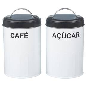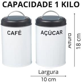 Características: Cor: Branco com tampa preta fosca Material: Metal galvanizado com pintura eletrostática Dimensões: 18 cm (A) x 10 cm (L) Capacidade: 1 kg por pote