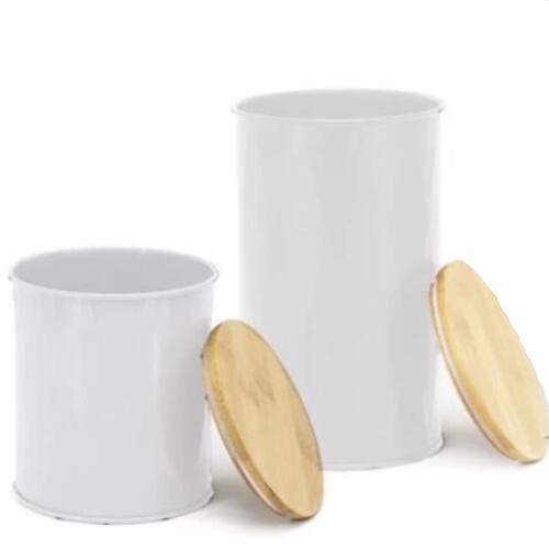 Kit de 2 Potes de Mantimentos – Metal com Tampa de Bambu Hermética