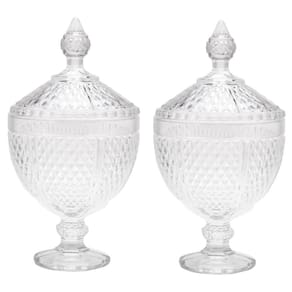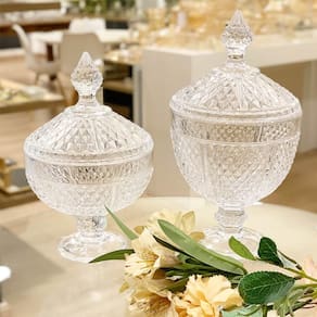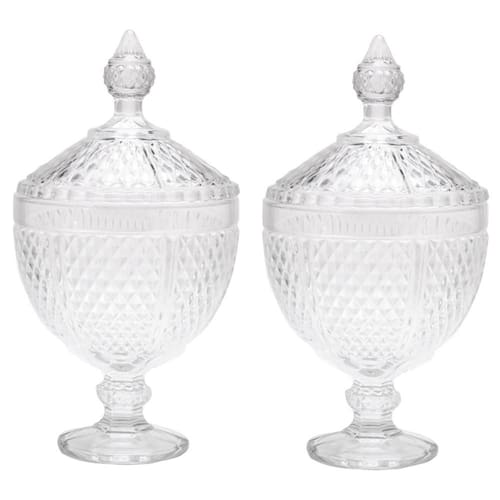 Kit 2 Potiches de Cristal com Pé Bico de Jaca Perseu Lyor Bomboniere com Tampa Pote.
