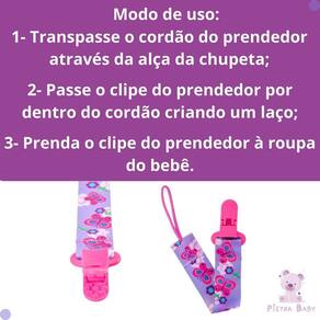 Com o clipe fácil de prender na roupinha do bebê, você nunca mais terá que se preocupar com a chupeta caindo no chão. Mantenha a chupeta sempre limpa e acessível ao seu bebê, evitando quedas, perdas ou contaminações indesejadas.