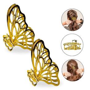 Características principais: - cor dourada; - formato borboleta pequena; - kit com 2 unidades iguais; - para todos os tipos de cabelos; - penteados presos e semi-presos; - combina com diversos looks; - material resistente; - não danifica os fios.