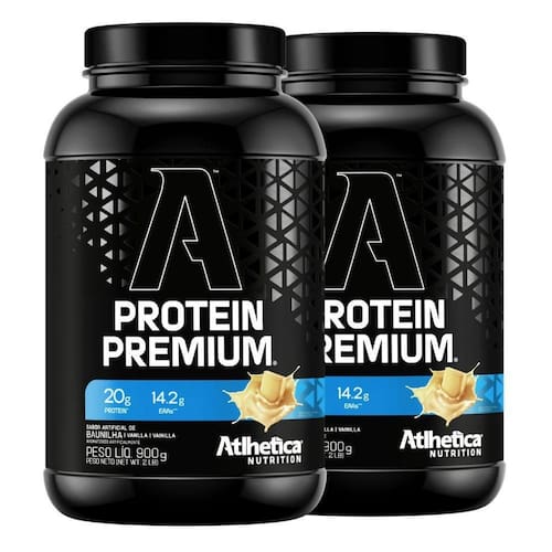Protein Premium - Atlhetica Nutrition O Best Whey Protein Premium contém uma combinação poderosa de proteínas: proteína concentrada do soro do leite, proteína isolada de soja e proteína isolada de ervilha. Ideal para quem busca resultados, esse suplemento alimentar oferece alto valor biológico e pode auxiliar no alcance dos seus objetivos. Com 20g de proteínas por porção e 14,2g de aminoácidos essenciais EAAs , o Protein Premium é um complemento nutritivo e proteico, para manter uma alimentação equilibrada, especialmente na rotina agitada. Aliado a uma boa hidratação e noites de sono de qualidade, ele pode ser uma peça-chave no seu desenvolvimento. Benefícios: 20g de proteína por dose; 14,2g de EAAs aminoácidos essenciais ; Proteína isolada de soja; Proteína isolada de ervilha; Fórmula exclusiva; Não contém glúten; Com sua fórmula exclusiva, o Protein Premium se destaca como um suplemento alimentar que proporciona o suporte necessário para maximizar seus esforços e alcançar os melhores resultados. Sugestão de Consumo: Misture 33g 2 dosadores em 200ml de água ou bebida gelada de sua preferência.