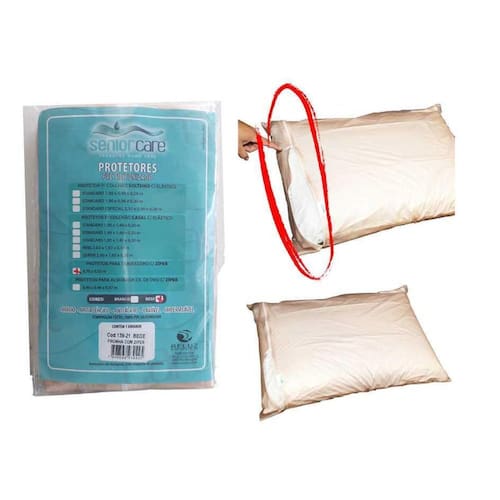 protetor pvc siliconizado para travesseiro com ziper bege - senior care confortável que impede a passagem de líquidos, ácaros e seus dejetos;