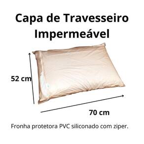 produto macio, lavável e impermeável, além de antialérgico e antiácaro. Composição: 100% pvc siliconado. Com zipper lateral facilitando a colocação. Medidas: 70cm x 52cm. Cor: bege. Precauções