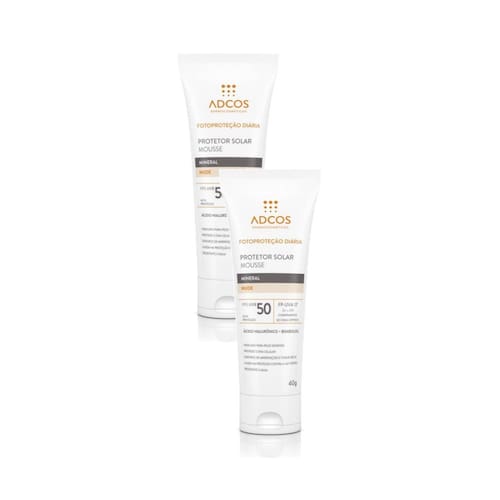 O que é e para que serve o Protetor Solar Mousse Adcos Mineral Nude FPS50? O Protetor Solar Facial Mousse da Adcos é ideal para proteger a pele do rosto contra os raios UV - FPS 50 - e para disfarçar imperfeições, poros e rugas. Sua textura em mousse é ultraleve, excelente para todos os tipos de pele e especialmente as oleosas, já que ajuda a controlar a oleosidade por 10 horas. A fórmula conta, ainda, com o Ácido Hialurônico, que acalma e repara a pele, e com a Vitamina E, um potente antioxidante que protege a pele contra os radicais livres e dos danos da radiação solar. Cor Nude. Mais benefícios Feito especialmente para as peles brasileiras. Deixa a pele lisa, uniforme e aveludada. Protege dos danos causados pela poluição e luz visível. Vegano. Desenvolvido com ingredientes biocompatíveis. Como usar o Protetor Solar Mousse Adcos Mineral Nude FPS 50? Aplique abundantemente antes da exposição ao sol. Se a quantidade aplicada não for adequada, o nível de proteção será significativamente reduzido. É necessária a reaplicação do produto para manter a sua efetividade. Reaplicar sempre, após sudorese intensa, nadar ou banhar-se, secar-se com toalha e durante a exposição ao sol. Ingredientes Cyclopentasiloxane, Aqua, Zinc Oxide, Isododecane, Titanium Dioxide, Caprylyl Methicone, Peg-10 Dimethicone, Polyamide-5, Isopropyl Lauroyl Sarcosinate, Dimethicone/Bis-Isobutyl Ppg-20 Crosspolymer, Peg/Ppg-20/15 Dimethicone, Silica, Dimethicone/Vinyl Dimethicone Crosspolymer, Styrene/Acrylates Copolymer, Pentylene Glycol, Hydrated Silica, Polyurethane-35, Sodium Chloride, Ci 77492, Hydrogen Dimethicone, Glycerin, Octyldodecanol, Phenoxyethanol, Aluminum Hydroxide, Caprylyl Glycol, Triethoxycaprylylsilane, Bisabolol, Ethylhexylglycerin, Tocopheryl Acetate, Ci 77491, Edta, Benzylidene Dimethoxydimethylindanone, Ci 77499, Sorbitan Oleate, Stearic Acid, Magnesium Hydroxide , Decarboxy Carnosine Hcl, Butylene Glycol, Methylpropanediol, Hydrolyzed Hyaluronic Acid, Phenylpropanol. Advertências Uso externo. Evite contato com os olhos; caso isso aconteça, enxágue-os com água em abundância. Descontinue o uso se surgirem irritações na pele. Se a quantidade aplicada não for adequada, o nível de proteção será significativamente reduzido. O produto ajuda a prevenir as queimaduras solares, mas não oferece nenhuma proteção contra a insolação. Evite exposição prolongada das crianças ao sol. Para crianças menores de 6 (seis) meses, consultar um médico. Mantenha fora do alcance das crianças.