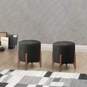 Kit 2 Puf Puff Para Sala Lhor Veludo Preto Rm Preto