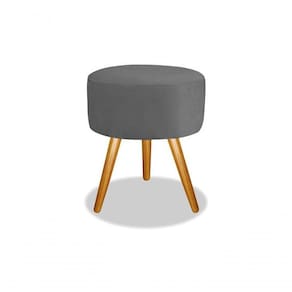 Kit 2 Puf, Puffs Para Sala E Hall De Entrada Redondo Pé Palito Suede Cinza