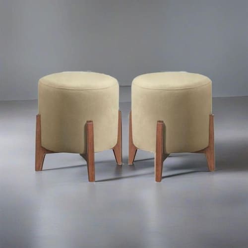 Kit 2 Puff Decorativo Para Sala Redondo Luxo Dallas Suede Bege