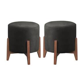 Kit 2 Puff Decorativo Para Sala Redondo Luxo Dallas Veludo Preto