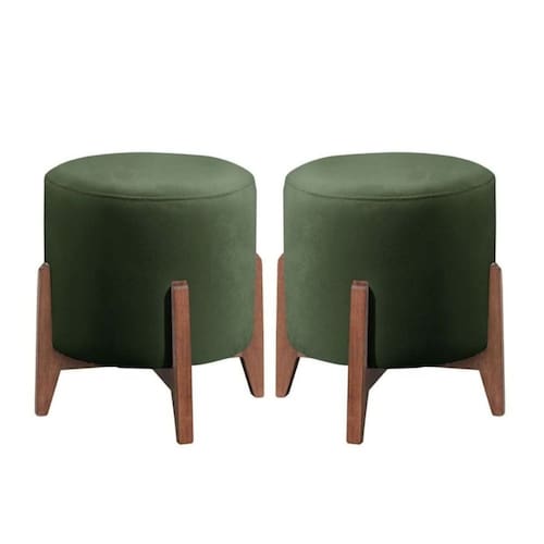 Kit 2 puff Decorativo para Sala Redondo Luxo Selena Veludo - Verde