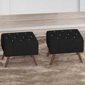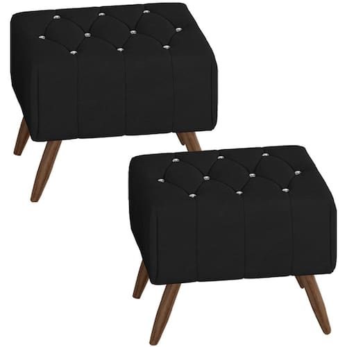 Kit 2 Puff Puf Para Sala Pes Madeira Trit Veludo, ideal para quem procura por funcionalidade e modernidade, trazendo um visual versátil a sua decoração. Estrutura em madeira de reflorestamento (pinus, eucaliptos e placas de MDF) que oferece maior durabilidade ao produto. Compostos por madeira imunizada contra mofo, cupim e microrganismos, revestimento em tecido veludo, botões de cristal, estrutura em espuma D-20, adornos em espuma D-20, e conta com 4 pés em madeira de 22 cm de altura. Suporta 150 kg cada. Possui design inovador e sofisticado, proporcionando charme e elegância ao seu ambiente. Este móvel chegará na sua casa separado em 02 volumes.