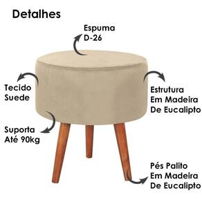 Kit 2 Puff Puf Redondo Pes Palito 44x40cm, desenvolvido para você que procura conforto e praticidade. Ele é capaz de criar um clima aconchegante e sofisticado a qualquer ambiente. Estrutura em Madeira de Eucalipto, espuma do assento em D-26, revestimento em tecido suede e acompanha pés palito em madeira de eucalipto na cor castanho de 25 cm. Suporta até 90kg. Ideal para ser utilizado em sala de estar, ambientes corporativos, hall de entrada ou quarto. Este móvel chegará na sua casa separado em 02 volumes.