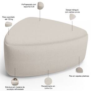 Feito para quem ama versatilidade com estilo, esse puff triângulo é o aliado perfeito para criar um cantinho de conversa na sala, com um toque moderno; apoiar os pés na cama ou servir de banco improvisado no quarto e, ainda, surpreender na recepção de um escritório descolado ou no home office. Com linhas que equilibram sofisticação e aconchego, o Puff Orgânico Trizza é a peça que faltava para seu espaço respirar design funcional - sem abrir mão do conforto. Onde você vai colocá-lo?