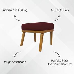 Estrutura em madeira de eucalipto de reflorestamento, garantindo resistência e durabilidade. Revestido em material sofisticado, que facilita a limpeza e traz modernidade ao és de madeira, agregando estabilidade e um design contemporâneo. Suporta até 100 kg, oferecendo e funcionalidade.
