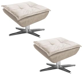 Kit 2 Puffs Decorativos Sala De Estar Giratória Cromada Opla Suede Bege - Ibiza