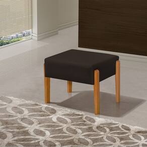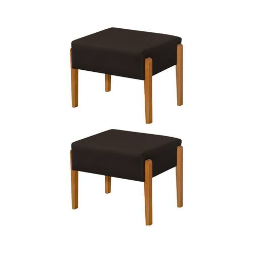 Kit 2 Puffs Pés em Madeira Maciça Isla Linho Marrom Escuro