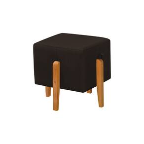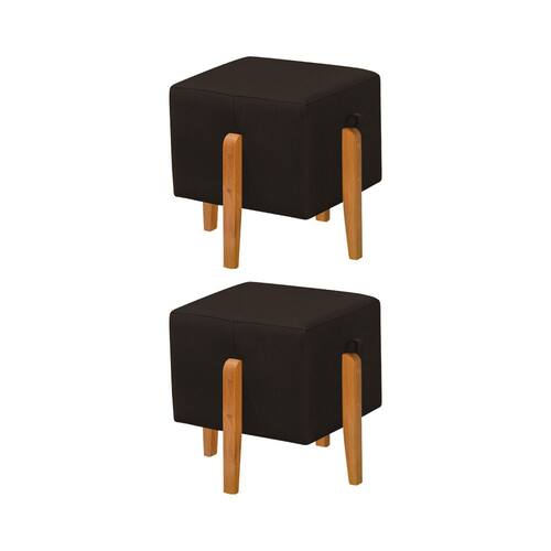Kit 2 Puffs Quadrado Pés em Madeira Maciça Fiji Linho Marrom Escuro