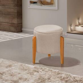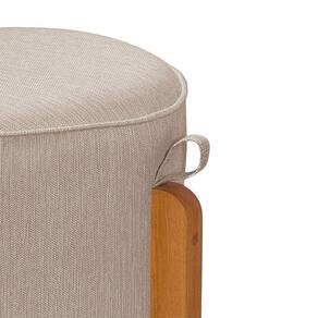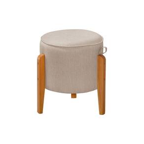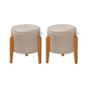 Kit 2 Puffs Redondo Pés em Madeira Maciça Pipa Linho Bege