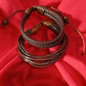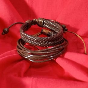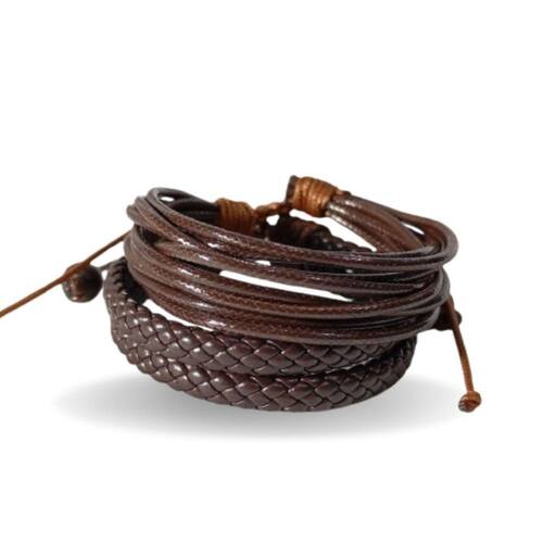 Contém: 1 pulseiras em couro regulável 1 pulseira em cordas