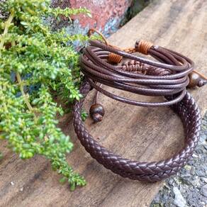 Pulseira masc fem couro madeira corda marrom kit 2 peças é uma ótima escolha para te deixar ainda mais estiloso. Temos diversos modelos e acessórios para completar o seu look.