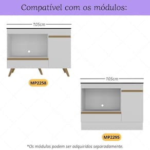 Diferenciais: * Design elegante que harmoniza com qualquer estilo de cozinha. * Puxadores em ABS: material leve, durável e fácil de limpar. * Pés em polipropileno no estilo retrô: elevam o móvel, protegendo contra a umidade e trazendo charme extra. * Kit compatível com balcão 105cm da linha Veneza (Referências: MP2258 - MP2295). * Fácil instalação.