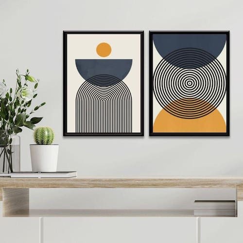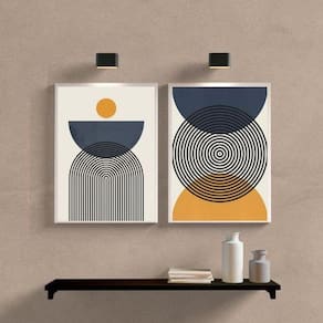 Kit 2 quadros abstrato círculos azul e mostarda 33x24cm - com vidro Moldura: madeira preta Informações do produto tire todas as suas dúvidas no descritivo abaixo: decoração para quarto, sala, cozinha, escritório, área gourmet e muito mais. Chega de paredes vazias medidas - cada peça tem 33x24cm a4 . Material do papel - papel fotográfico brilhante de altíssima resolução acabamento - todos os quadros são acompanhados de vidro para proteção da imagem. - moldura em madeira maciça na cor preta ou branca conforme produto escolhido e pendurador . - os quadros são embalados de forma segura com plástico bolha com camada dupla de acordo com o tamanho dos quadros. Garantia - garantia de 3 meses. Meu quadro chegou. Como posso fixá-lo Você precisa apenas de um martelo e um prego, pois os quadros já vão acompanhados de penduradores. Esta é a forma mais indicada. Como posso limpar meu quadro A limpeza é feita como um móvel comum da sua casa. Apenas um pano seco ou espanador são suficientes para tal Ean: 7894106656963