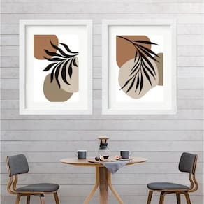 Kit 2 quadros abstratos com folhas - 60x48cm Moldura: madeira preta Informações do produto tire todas as suas dúvidas no descritivo abaixo: decoração para quarto, sala, cozinha, escritório, área gourmet e muito mais. Chega de paredes vazias medidas - cada peça tem 60x48cm . Material do papel - papel fotográfico brilhante de altíssima resolução acabamento - todos os quadros são acompanhados de vidro para proteção da imagem. - moldura em madeira maciça na cor preta ou branca conforme produto escolhido e pendurador. - paspatur branco com 7cm de largura - os quadros são embalados de forma segura com plástico bolha com camada dupla de acordo com o tamanho dos quadros. Garantia - garantia de 3 meses. Meu quadro chegou. Como posso fixá-lo Você precisa apenas de um martelo e um prego, pois os quadros já vão acompanhados de penduradores. Esta é a forma mais indicada. Como posso limpar meu quadro A limpeza é feita como um móvel comum da sua casa. Apenas um pano seco ou espanador são suficientes para tal
