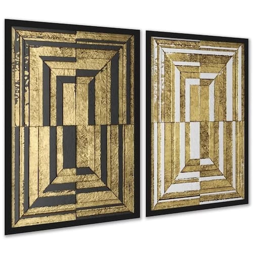 Kit 2 quadros abstratos efeito 3d - preto branco ouro 24x18cm - com vidro Cor: moldura preta Informações do produto tire todas as suas dúvidas no descritivo abaixo: decoração para quarto, sala, cozinha, escritório, área gourmet e muito mais. Chega de paredes vazias medidas - cada peça tem 24x18cm a5 . Material do papel - papel fotográfico brilhante de altíssima resolução acabamento - todos os quadros são acompanhados de vidro para proteção da imagem. - moldura em madeira maciça na cor preta ou branca conforme produto escolhido e pendurador . - os quadros são embalados de forma segura com plástico bolha com camada dupla de acordo com o tamanho dos quadros. - de 3 meses. Meu quadro chegou. Como posso fixá-lo Você precisa apenas de um martelo e um prego, pois os quadros já vão acompanhados de penduradores. Esta é a forma mais indicada. Como posso limpar meu quadro A limpeza é feita como um móvel comum da sua casa. Apenas um pano seco ou espanador são suficientes para tal
