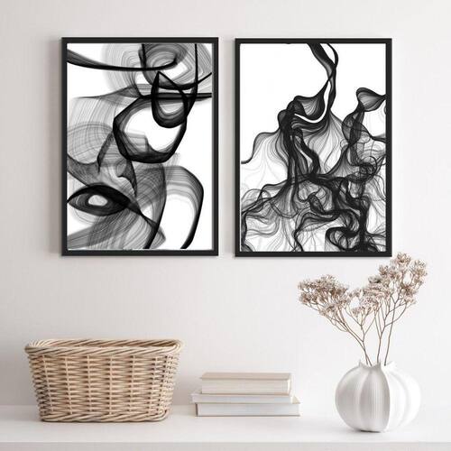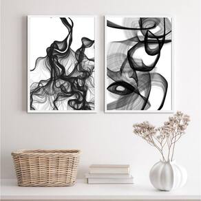 Kit 2 Quadros Abstratos Mulher Preto E Branco 45X34Cm Vidro