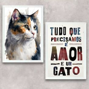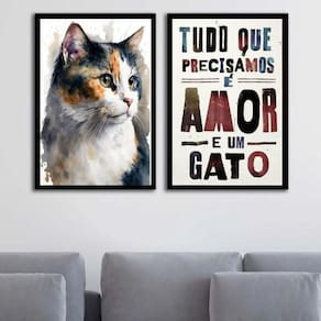 Kit 2 quadros amor e um gato 24x18cm Cor: moldura branca Informações do produto tire todas as suas dúvidas no descritivo abaixo: decoração para quarto, sala, cozinha, escritório, área gourmet e muito mais. Chega de paredes vazias medidas - cada peça tem 24x18cm a5 . Material do papel - papel fotográfico brilhante de altíssima resolução acabamento - todos os quadros são acompanhados de uma película de acetato para proteção da imagem. - os quadros são embalados de forma segura com plástico bolha com camada dupla de acordo com o tamanho dos quadros. Garantia - garantia de 3 meses. Meu quadro chegou. Como posso fixá-lo Você precisa apenas de um martelo e um prego, pois os quadros já vão acompanhados de penduradores. Esta é a forma mais indicada. Caso prefira, você pode utilizar uma fita dupla face neste caso, sugerimos de alta qualidade para evitar que descole e seu quadro caia . Como posso limpar meu quadro A limpeza é feita como um móvel comum da sua casa. Apenas um pano seco ou espanador são suficientes para tal
