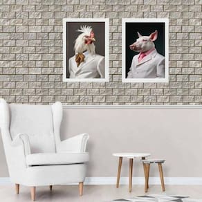 Kit 2 quadros animais - porco e galo elegantes 45x34cm - com vidro Moldura: madeira preta Informações do produto tire todas as suas dúvidas no descritivo abaixo: decoração para quarto, sala, cozinha, escritório, área gourmet e muito mais. Chega de paredes vazias medidas - cada peça tem 45x34cm a3 . Material do papel - papel fotográfico brilhante de altíssima resolução acabamento - todos os quadros são acompanhados de vidro para proteção da imagem. - moldura em madeira maciça na cor preta ou branca conforme produto escolhido e pendurador . - os quadros são embalados de forma segura com plástico bolha com camada dupla de acordo com o tamanho dos quadros. Garantia - garantia de 3 meses. Meu quadro chegou. Como posso fixá-lo Você precisa apenas de um martelo e um prego, pois os quadros já vão acompanhados de penduradores. Esta é a forma mais indicada. Como posso limpar meu quadro A limpeza é feita como um móvel comum da sua casa. Apenas um pano seco ou espanador são suficientes para tal