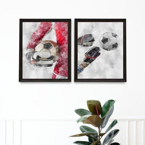 Kit 2 quadros aquarela futebol goleiro 33x24cm Moldura: madeira preta Informações do produto tire todas as suas dúvidas no descritivo abaixo: decoração para quarto, sala, cozinha, escritório, área gourmet e muito mais. Chega de paredes vazias medidas - cada peça tem 33x24cm a4 . Material do papel - papel fotográfico brilhante de altíssima resolução acabamento - todos os quadros são acompanhados de uma película de acetato para proteção da imagem. - os quadros são embalados de forma segura com plástico bolha com camada dupla de acordo com o tamanho dos quadros. Garantia - garantia de 3 meses. Meu quadro chegou. Como posso fixá-lo Você precisa apenas de um martelo e um prego, pois os quadros já vão acompanhados de penduradores. Esta é a forma mais indicada. Caso prefira, você pode utilizar uma fita dupla face neste caso, sugerimos de alta qualidade para evitar que descole e seu quadro caia . Como posso limpar meu quadro A limpeza é feita como um móvel comum da sua casa. Apenas um pano seco ou espanador são suficientes para tal